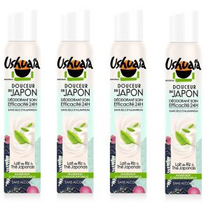ابتكرت مخترات Ushuaïa تشكيلة متميزة من مزيلات الروائح المزعجة  Douceur du Japon المدعمة بأريج خالص من اليابان، بلد الشمس المشرقة، والمركزة بتركيبة من حليب الأرز ذو الخاصيات المرطبة للبشرة، مع أريج من رائحة زهرة ساكورا، أو الشاي الياباني العريق، كما يتميز بتركيبته الخالية من الكحول، ومن الأملاح الأليمينيوم، وهي مناسبة للبشرة الحساسة، لانتعاش يدوم 24 ساعة.